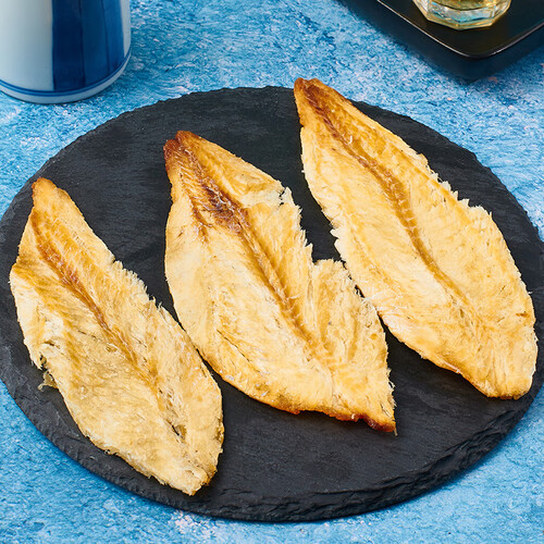 片片金黄,色泽诱人,从深海而来,为你送上海洋的鲜美味道,细心烤制,坚韧有嚼劲,名副其实的抗饿小能手。