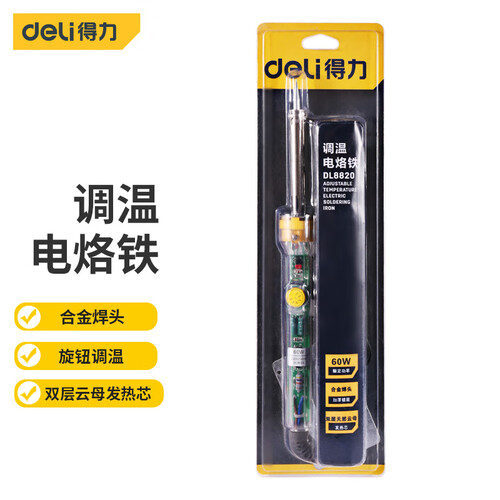 采用新型电子控温电路板,加有室温补偿功能,温度调节按钮可直接调节温度,合金焊头加厚镀层,且发热管防锈处理,更持久耐用。