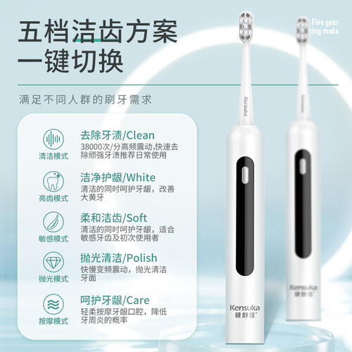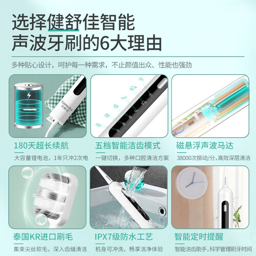 这款电动牙刷简约设计,优质工艺,握感舒适,三十秒智能提醒,省事省心,抗菌刷毛,能深入清洁牙缝。
