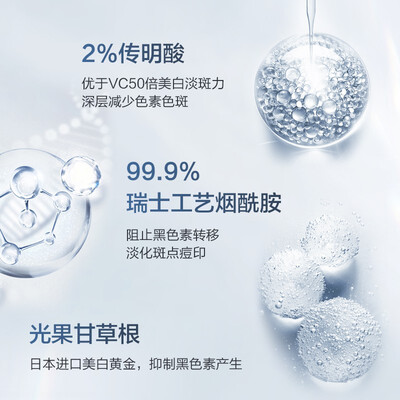 富含水解蜂王浆蛋白,舒缓敏感肌肤,内修外护相辅相成,重塑紧致美肌。添加传明酸成分,均衡肌肤色差,提升好气色。