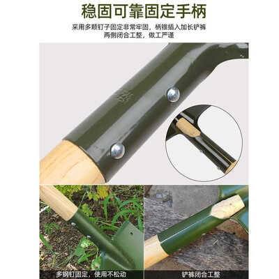 经过回火工艺处理,加强铲子的韧性,坚硬度高,抗压性能更强。优选木柄材质,能够吸湿防滑,抓握使用更稳定。