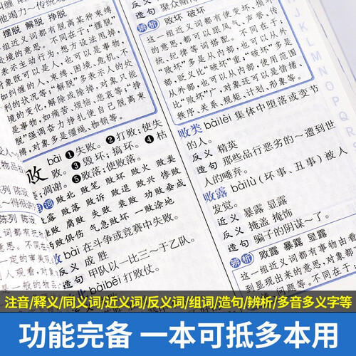 采用环保胶,先锁线再装订,经久耐用不掉页;采用字典专用纸,纸质光滑厚实,字迹清晰无异味,微黄,不伤眼。