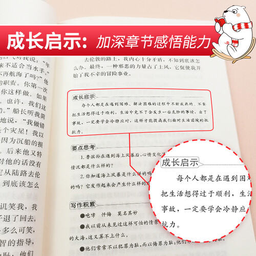 在荒无人烟的小岛上,鲁滨逊坚韧不拔地度过了28年,令人敬佩。章节后添加了写作积累,帮助孩子们有目的地运用与摘抄。
