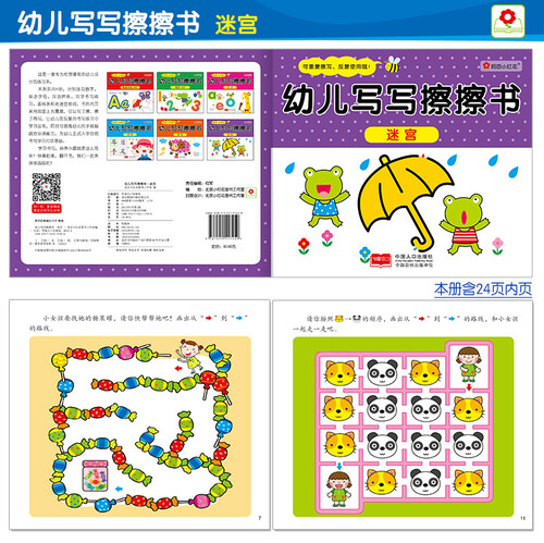一套专为幼儿握笔设计的学习书,页面全部覆膜,可以重复使用。标注笔顺笔画,掌握正确的书写顺序,丰富的拓展游戏培养学习兴趣。