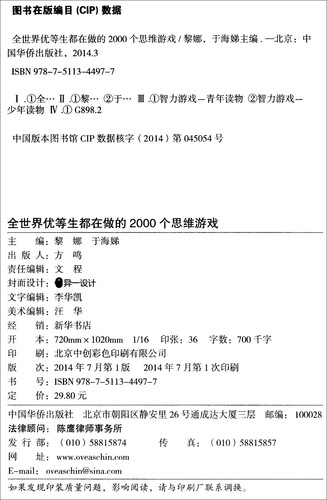 书中所选的游戏涉及的知识范围广,具有一定深度,可以锻炼思维能力,还具有趣味性,在解题过程中还可以获得快乐和满足。