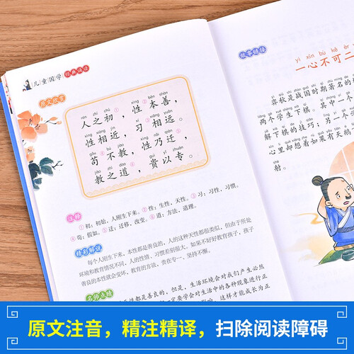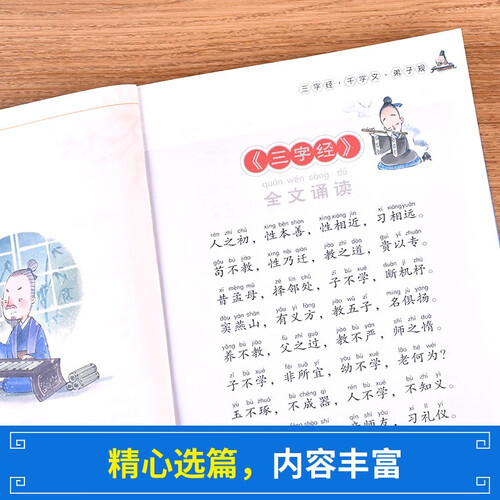 全书三字一句的韵文极易诵读,内容包括中国传统的教育、历史、伦理、道德等方面的知识以及一些民间传说,内容广博,却言简意赅。