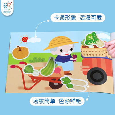 非常多得贴纸,大小各异,让宝宝自己动手的同时发散宝宝思维。选用不同的场景,可以充分锻炼宝宝对世界的认知。