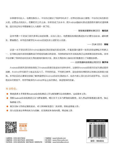 这本书以漫画以及对话的讲述方式,为读者解读了安卓平台自动化测试工具及框架的知识。书中知识逻辑清晰,技巧实用性强。