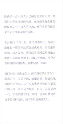 以记事的形式讲述了世界历史,选材全面,贯穿多个时间段,不仅适合小孩,家长也可以和孩子在互动中进行学习。