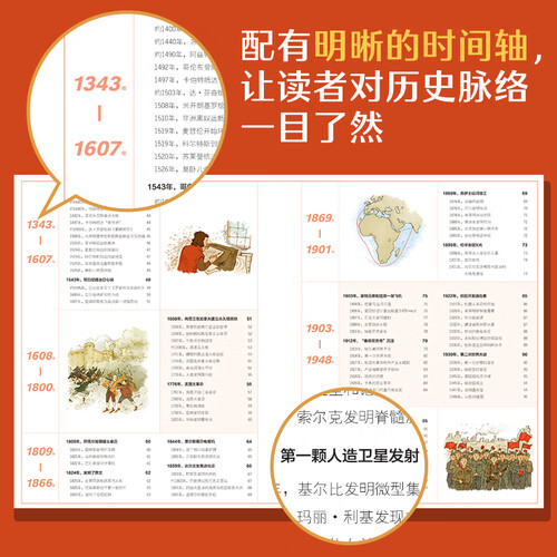 这本书按照从古到今历史发展的时间顺序,介绍了改变历史的所有大事件,以及它们是如何波及到未来,引发孩子的历史乐趣。