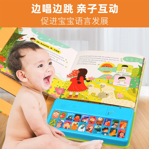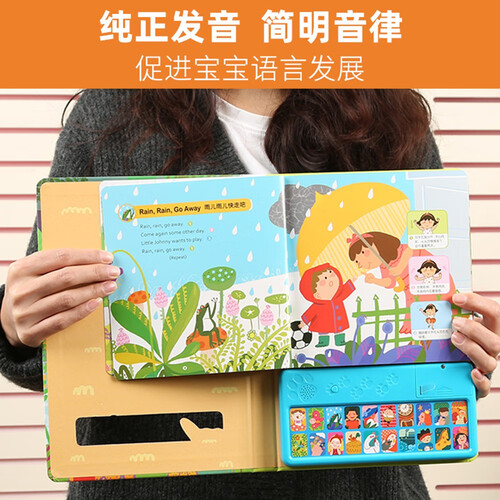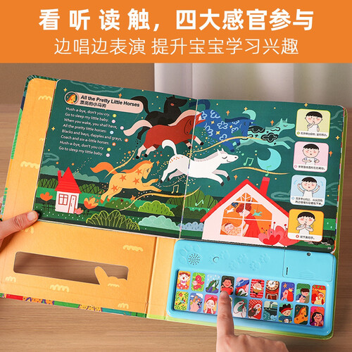 收录20首中英对照的儿歌,并搭载互动发声装置,带孩子聆听纯正的中英发音,帮助孩子纠正口音,促进语言能力的发展。
