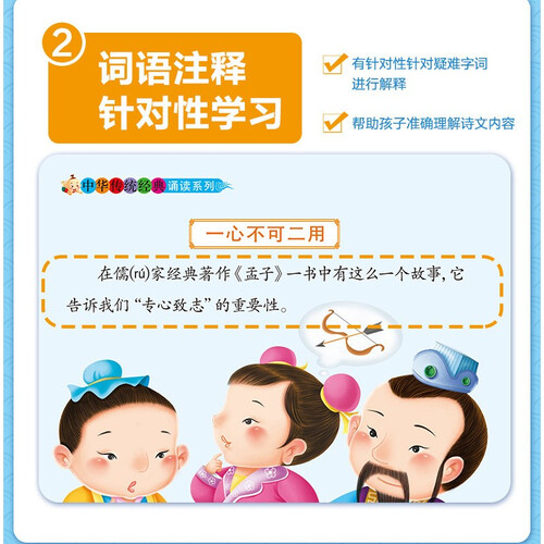 这本书收录了《三字经》原文,通过萌版插画和清晰的大字呈现给孩子。涵盖了多方面的中国传统文化知识,可帮助孩子拓展视野。