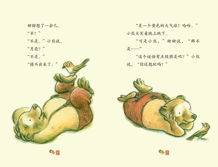 甜甜是一只鸟,小熊是一头熊,他们是要好的朋友,一起经历过许多冒险故事,期间装满许多不知名的小情绪,而友情则让一切融化。