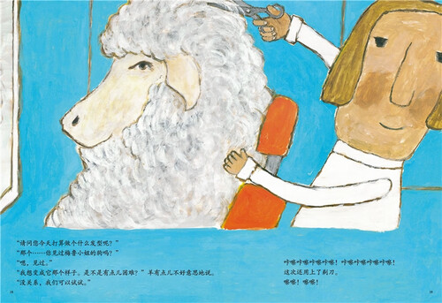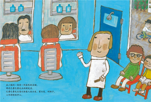 这本书让宝宝在幽默轻松的故事中明白了理发店里的洗头发、剪头发是怎么发生的,不仅一点不恐怖,而且还十分有趣。