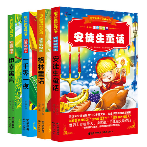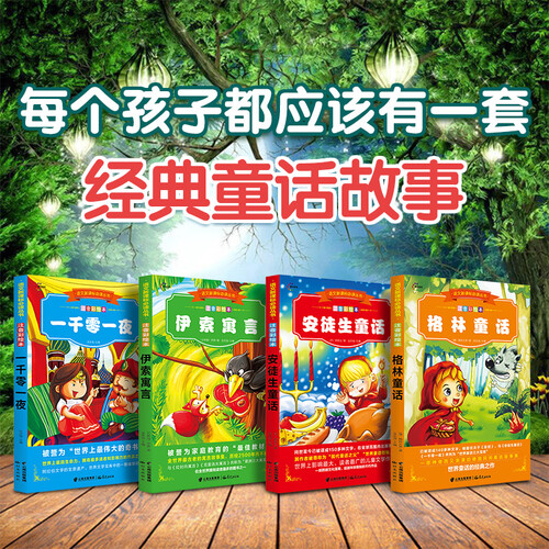 本套装包含安徒生童话、格林童话、一千零一夜、伊索寓言四大经典作品,它们被并列为“世界童话大宝库”。