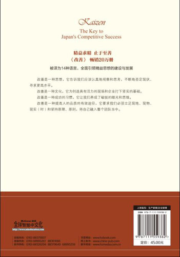 这本书对日本战后经济迅速崛起的奥秘作了深刻的分析,提出“改善”这一理念,为管理者提供实践指导,帮助企业实现持续性的优化。