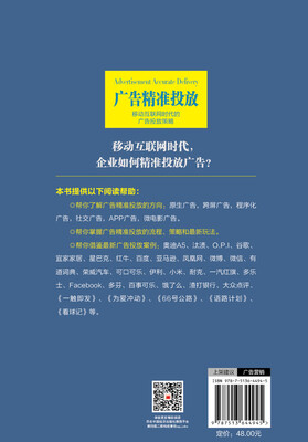 本书为企业提供了广告精准投放的方向,掌握广告精准投放的流程、策略和新玩法,从而获得更好的粉丝黏度和更多的忠实用户。