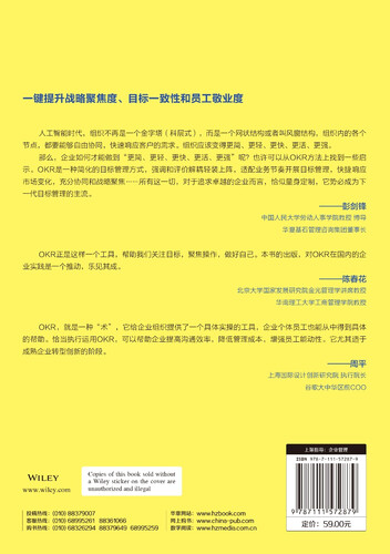 OKR是联结组织战略和团队、员工目标的利器。这本书是OKR应用方面的综合性指导,旨在帮助企业克服各种错综复杂的挑战。
