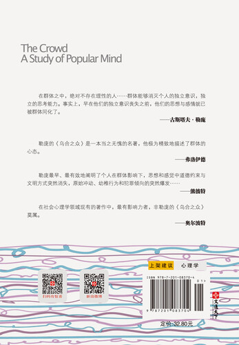 本书是一本杰出的心理学名著,颠覆了通常对群体的认识,将群体的特点剖析得淋漓尽致。帮助我们个体意志做出正确的选择。