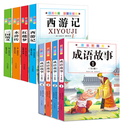 成语故事全套4册+四大名著全套4册,青少版彩色注音无障碍阅读,语文新课标推荐必读名著系列。