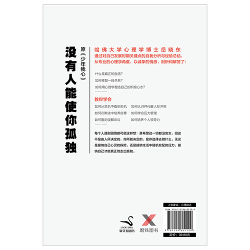 这本书从专业的心理学角度,以诚挚的情感,剖析和解答了“什么是真正的自信”这一问题,旨在帮助读者真正的走出孤独。