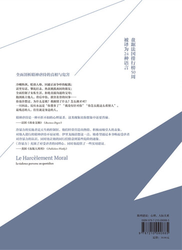 本书探讨了家庭和职场中的精神不好的状态,精神不好的不同阶段等方面,并站在施虐者和受虐者双方的角度做了详尽的分析。