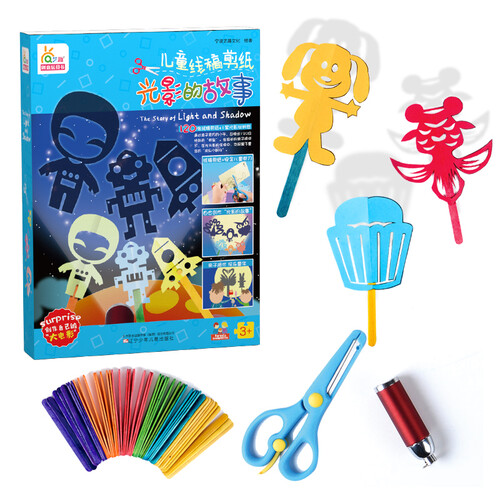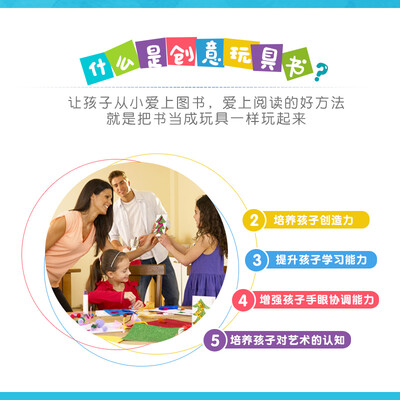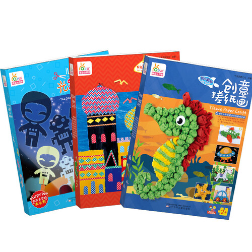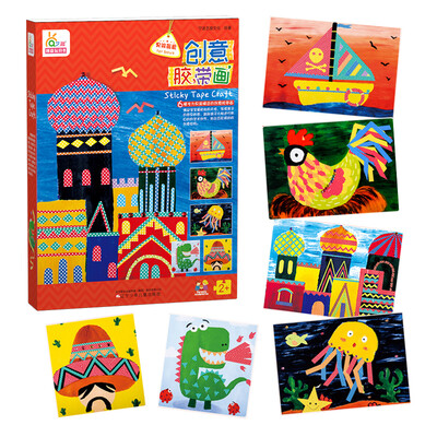 为男孩设计的创意玩具书套装,包含胶带画、搓纸画、线稿剪纸,让孩子在自由创作中培养对美和艺术的感知。