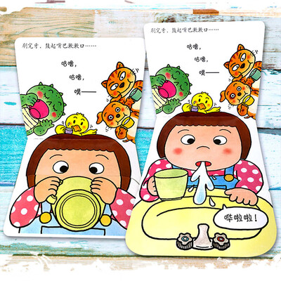 分别戏仿了宝宝日常生活中吃饭、洗澡、刷牙、游戏等等各种不同的时刻,42个翻折页设计,手指抓握能力会因为锻炼而更灵活。