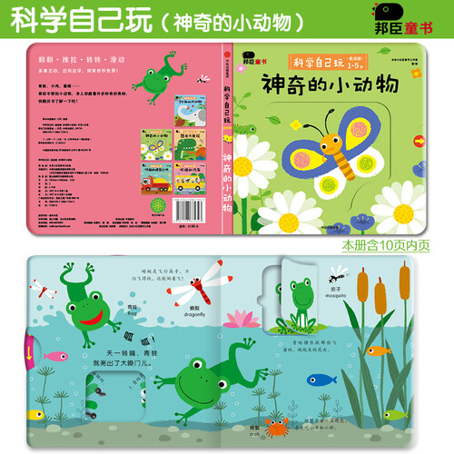 这套书包含了丰富的推拉翻转滑等趣味游戏,手眼互动阅读中认知更深刻,提高专注力和想象力。词语标注英文,培养双语认知的兴趣。