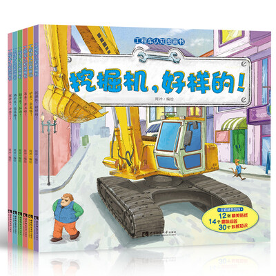 色彩清新|不一样的车辆认知故事书,给孩子一个丰富多彩的童年。写实的插图,还原了六种工程车的形象和工作场景。加厚的纸张采用环保印染,色彩清晰,不容易褪色。