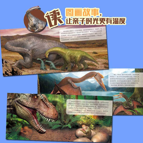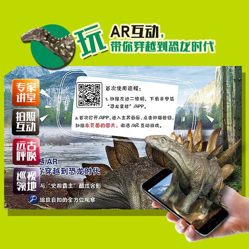 采用原创3D恐龙图片,结合震撼逼真的AR互动情景,能够全方位高度复原恐龙及其同时期动物的形态,充分展示远古动物风貌。