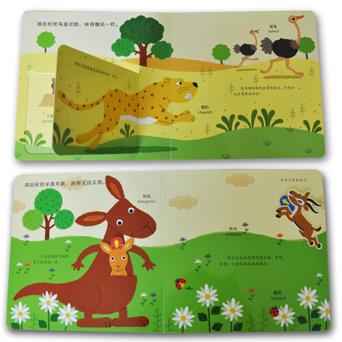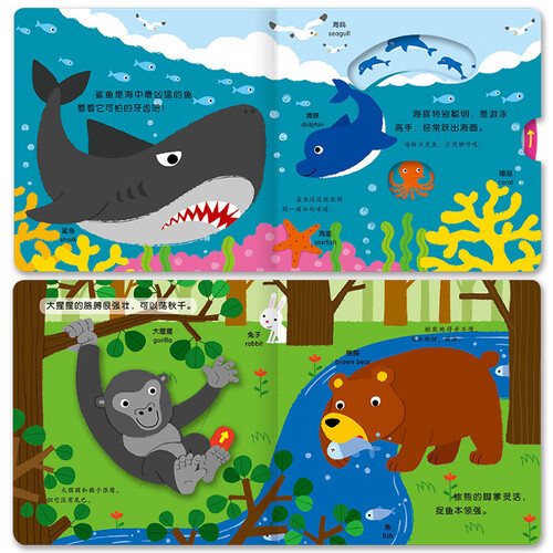 这是一本有关动物的幼儿益智书,通过丰富的机关设置了许多小游戏,互动性强,每开启一个机关都有新的发现,全书充满了趣味。