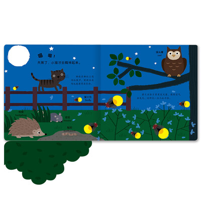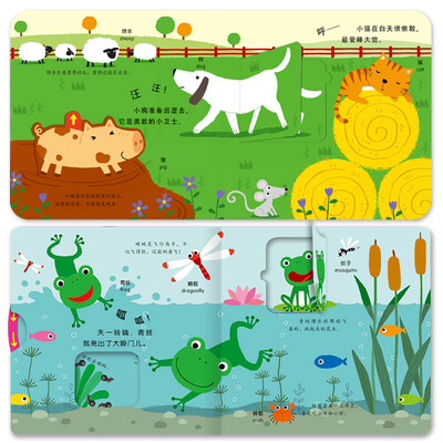 书中的重点词汇标记上英文,让宝宝进行双语学习。机关设计非常丰富,能够让图画动起来,吸引宝宝注意力。