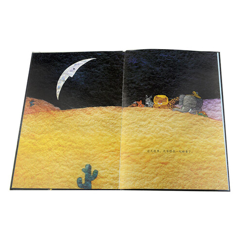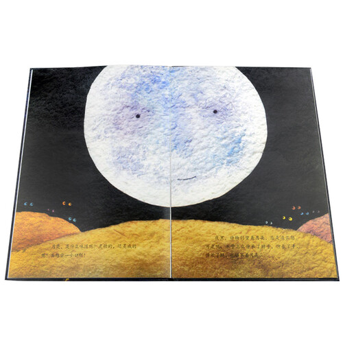 这本书充分利用纸张,用颜色铺满画面,给人震撼的视觉效果,带孩子在丰富的色彩中感受月亮的表情,认识月光下可爱的小动物。