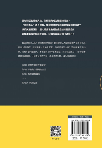本书提供了8种思考路径、31个实战练习、4步帮读者打破沟通僵局。成为沟通高手,你需要的是一本有效的人际沟通水平提升指南。