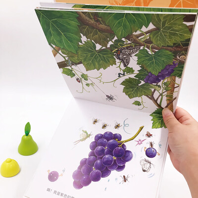 这本书以细腻写实的画风,描绘水果的颜色、形状、叶子与果实,让宝宝认识果园里自然生态的完整样貌。