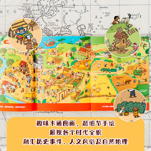 这是一本贝特朗·菲舒著《人类简史》借助地图、时间轴、历史大事件,多维度呈现历史,给孩子易理解的讲述方式。