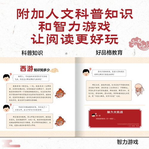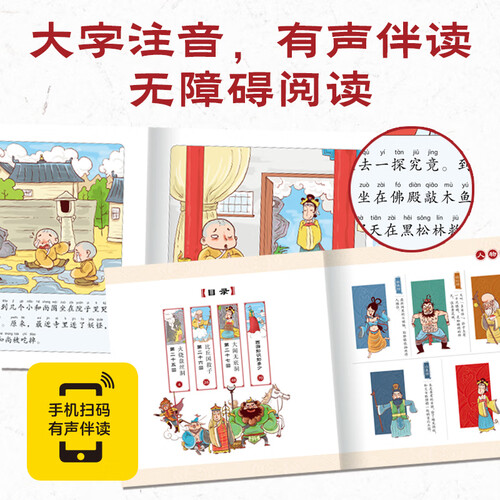 书本内容经过简化,让还在提前了解名著的魅力,培养阅读兴趣。设计有注音,可以提升拼音的水平,帮助阅读。