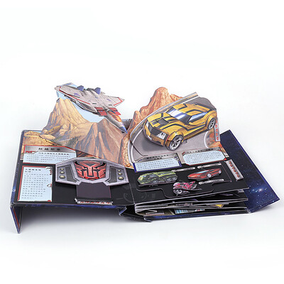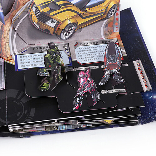 本书取材于热门电影《变形金刚》,将机械结构能达到的视觉做到了立体效果,书中将V型折扣和拉杆工艺很好地配合,是书更是玩具。