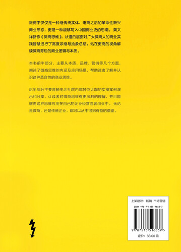 作者是微商界的大咖人物,出版了多本书籍,对微商领域有足够的了解和全面的把握。一本具有借鉴意义的书,值得企业学习。