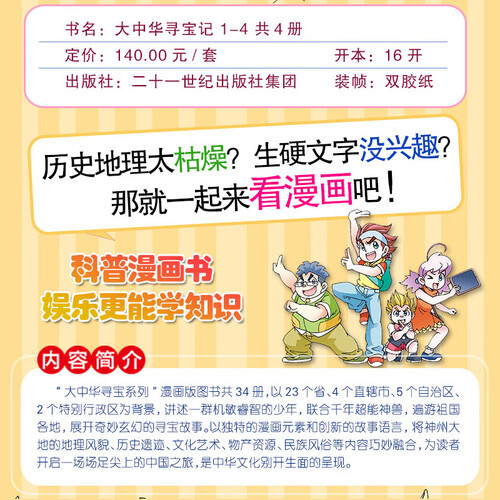 这是一套孙家裕著《大中华寻宝记》将神州大地的地理风貌、历史遗迹、文化艺术、物产资源、民族风俗等内容巧妙融合。
