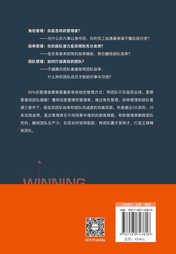 本书通过4大原则,25条实践金律,直击管理者在不同场景中遇到的困境难题,帮助管理者解除团队危机。