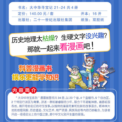 本书采用深受欢迎的漫画形式,描写了精彩刺激的寻宝之旅,向小读者展现了丰富的地理历史知识。