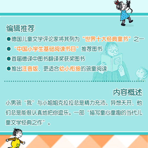 用言简意赅的文字,把故事绘声绘色地描述下来,讲述了男孩克拉和他的姐姐克拉拉发生的几个小故事。