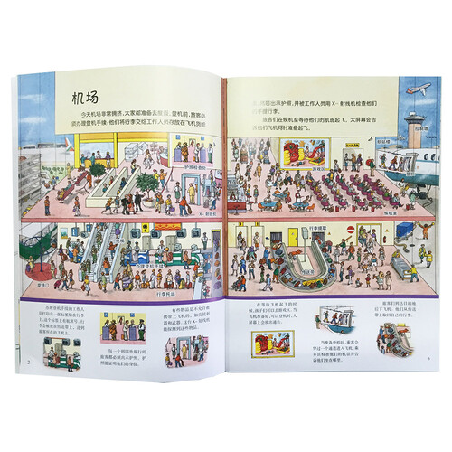 精美、细腻的全景剖视图,配以文字说明,每一幅场景都设置了“找一找”的环节,鼓励孩子不断寻找和发现有趣的小细节。