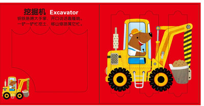 以手推拼图的形式展现5种常见的工程车辆,培养专注力,手脑协调能力;厚纸板印刷,结实耐撕裂。