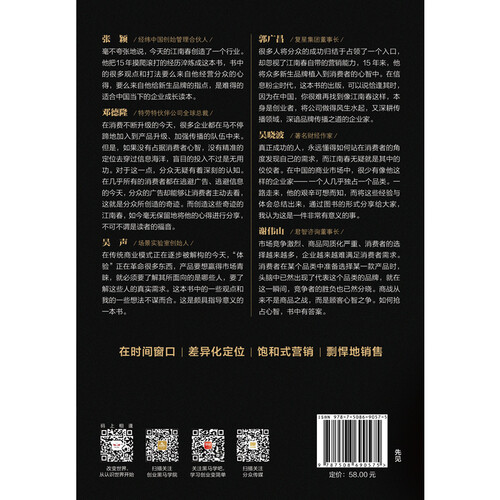 这本书系统地总结了作者15年的营销心法,披露了很多江南春亲历的、鲜为人知的产品与品牌从无到有、从弱到强的打造历程。
