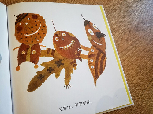 《落叶跳舞》讲述了在静静的森林里,巧妙地利用不同颜色和形状的落叶,绘成出人意料的丰富画面。