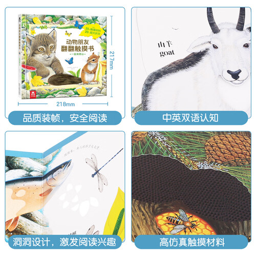 采用独特的仿真材料和中英双语的表达方式,为孩子展现了各种小动物的外形特征与触感,帮助孩子认知的同时,提升孩子语言表达。