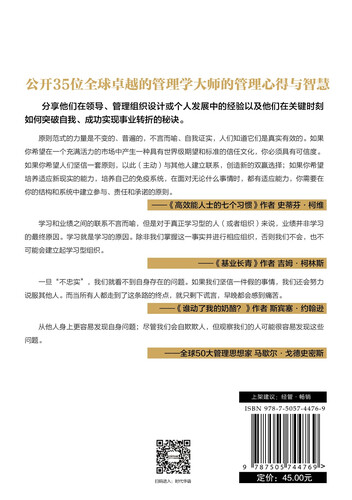 书中分享了三十五著名的管理学大师对于管理的认识与看法,了解大师们的想法,应用到生活实践中去,高效进行团队管理。